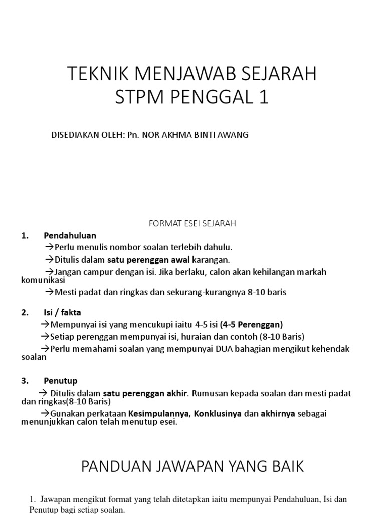 Teknik Menjawab Sejarah Stpm Penggal 1 Pdf